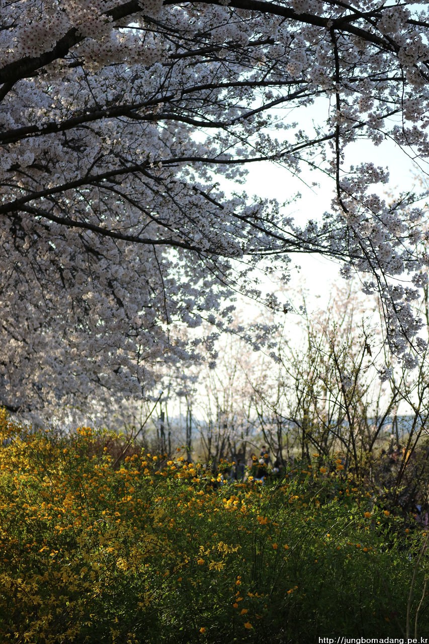 위는 벚꽃, 아래는 개나리, 황매화