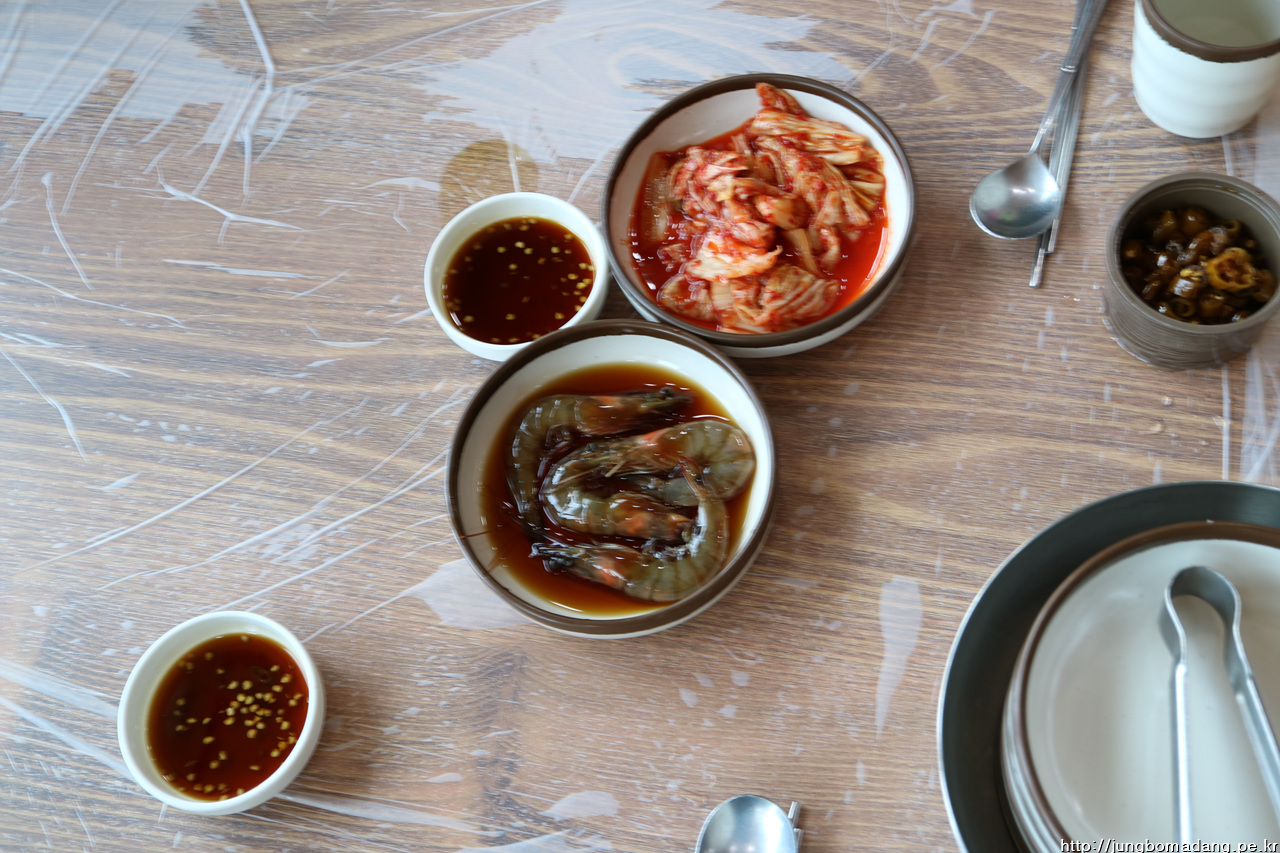 기본찬에 간장새우장도 나오는 디, 요건 해물파전 시키면 나온다고 합니다.