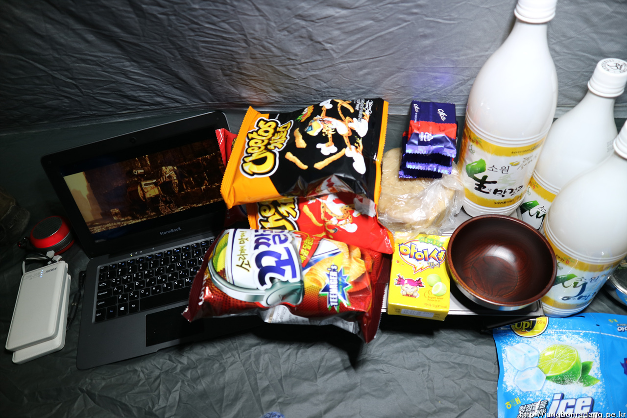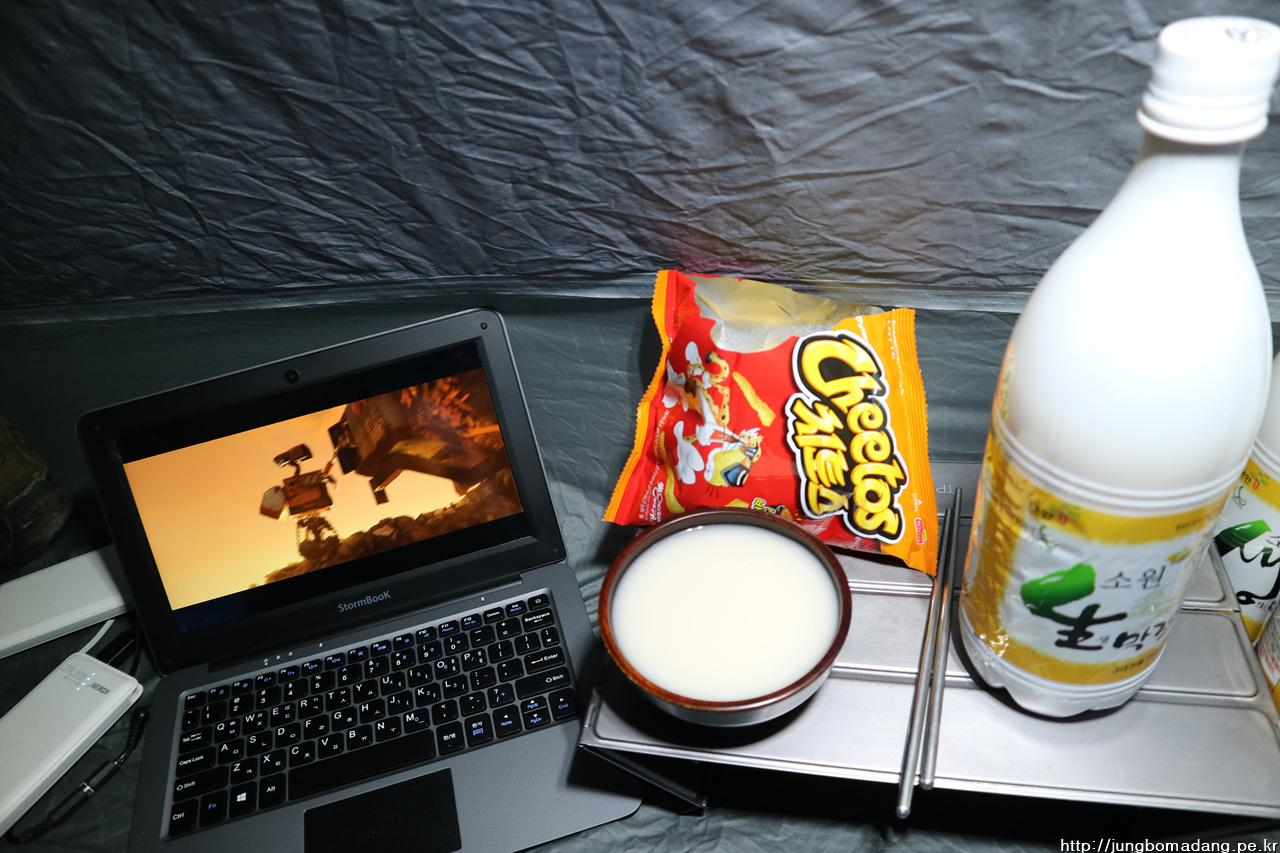 집으로 들어 와서, 오늘 챙겨온 먹거리도 나열하고, 노트북도 챙겨 왔으니 애니메이션 한판 때리면서 한잔 합니다.