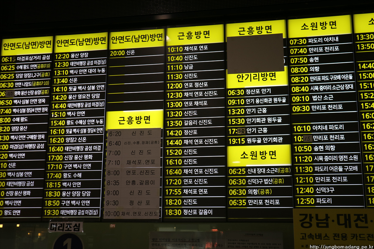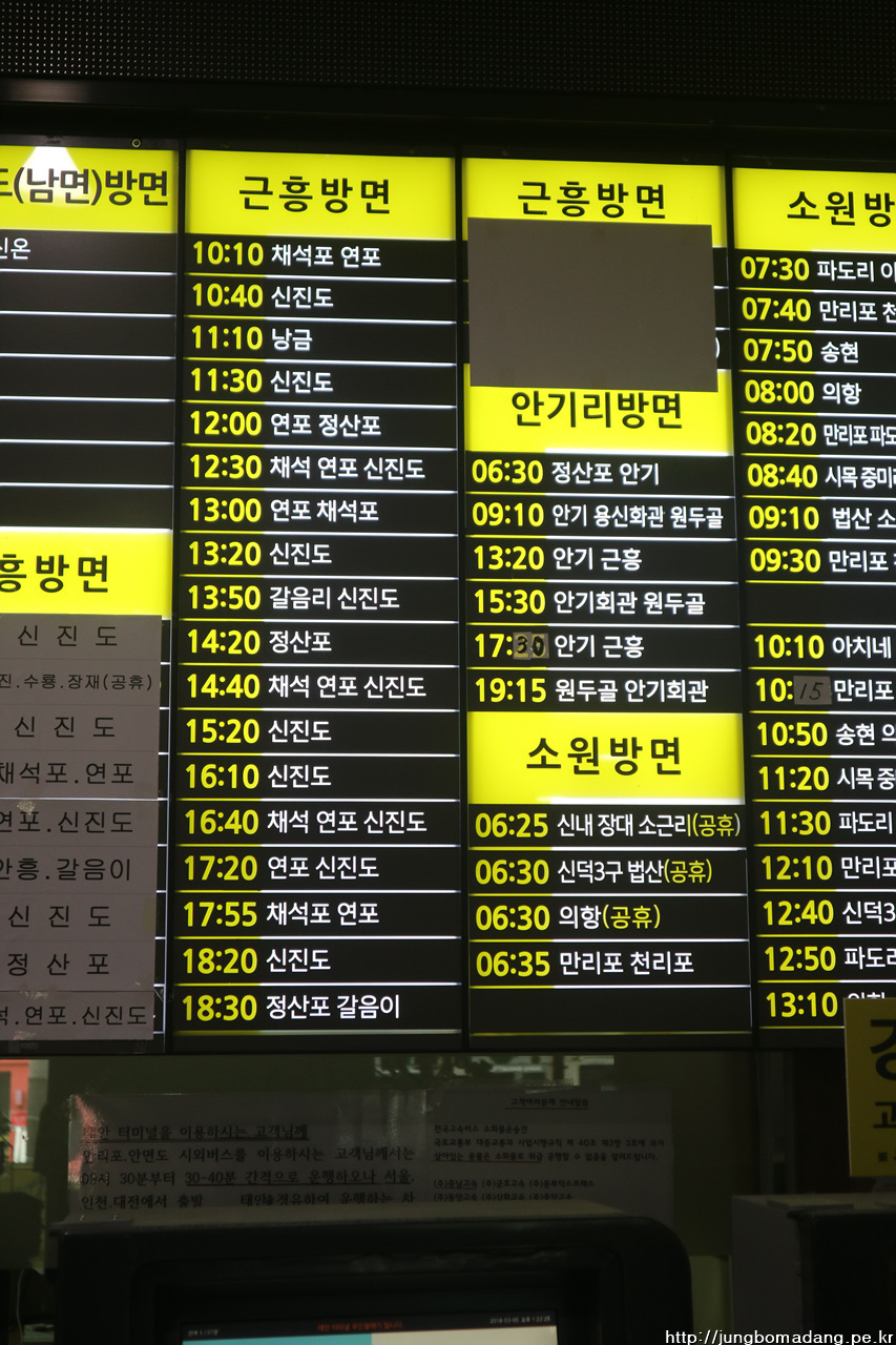 뭐 변경된 건 그렇다 치고, 홈페이지나 터미널내 전광판 시간표는 그대로 두고 버스 승차장쪽 버스 시간표만 바꿔두면 어쩌냐고 물으니 미안하답니다 ㅡ,.ㅡ