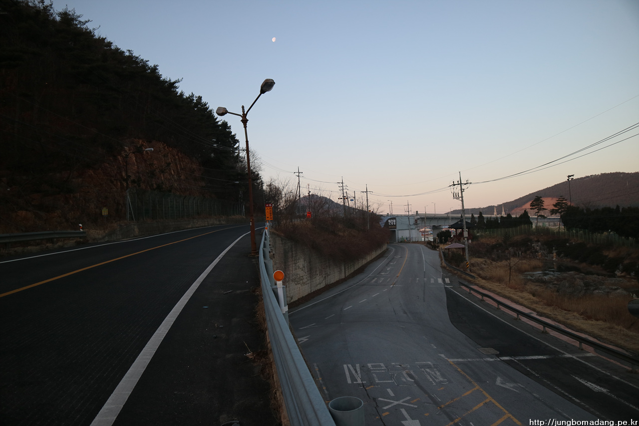 알고보니 정시에 태안터미널 출발한 버스는 방금 정류장을 약 36분쯤 통과해서 저기 다리 건너 정차후 쉬었다가 다시 정시에 출발해서 현재 서있는 정류장을 지나네요.