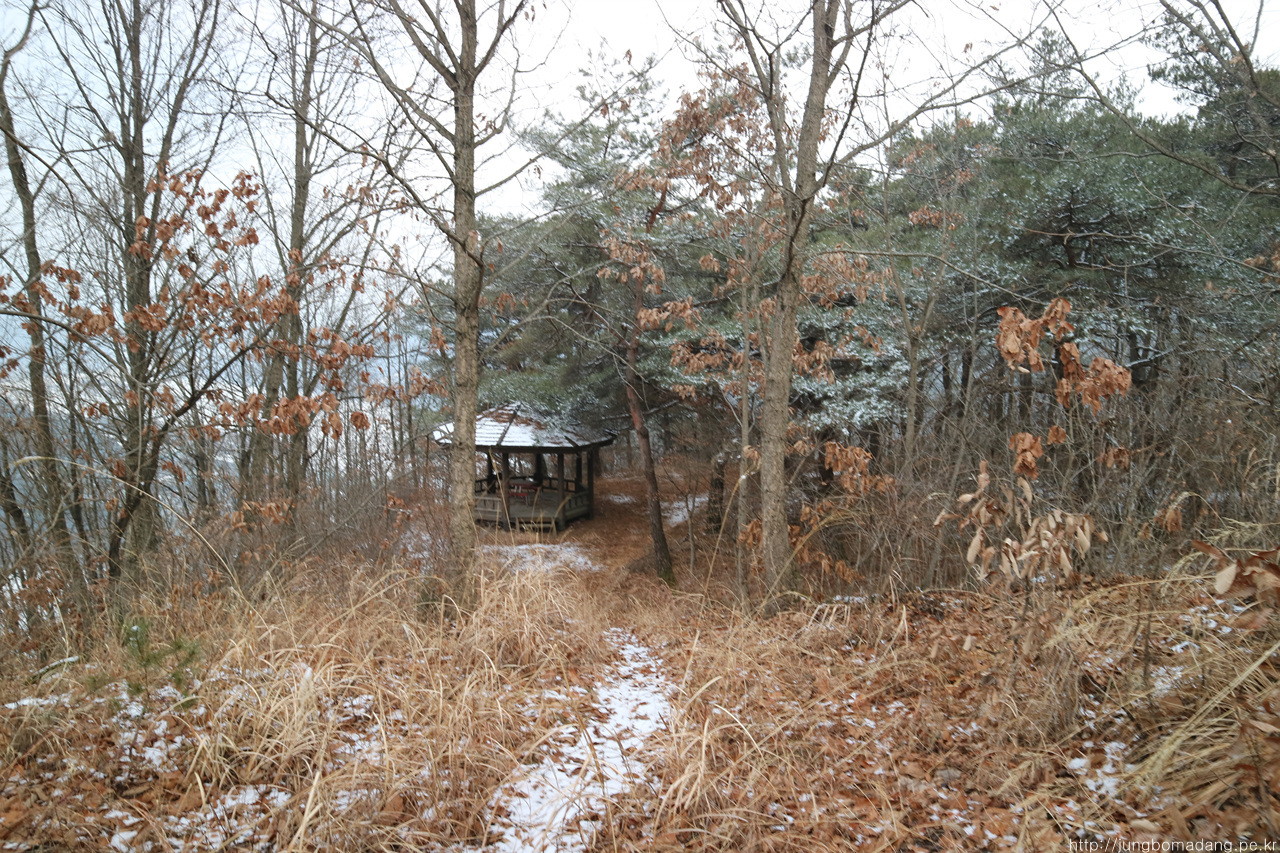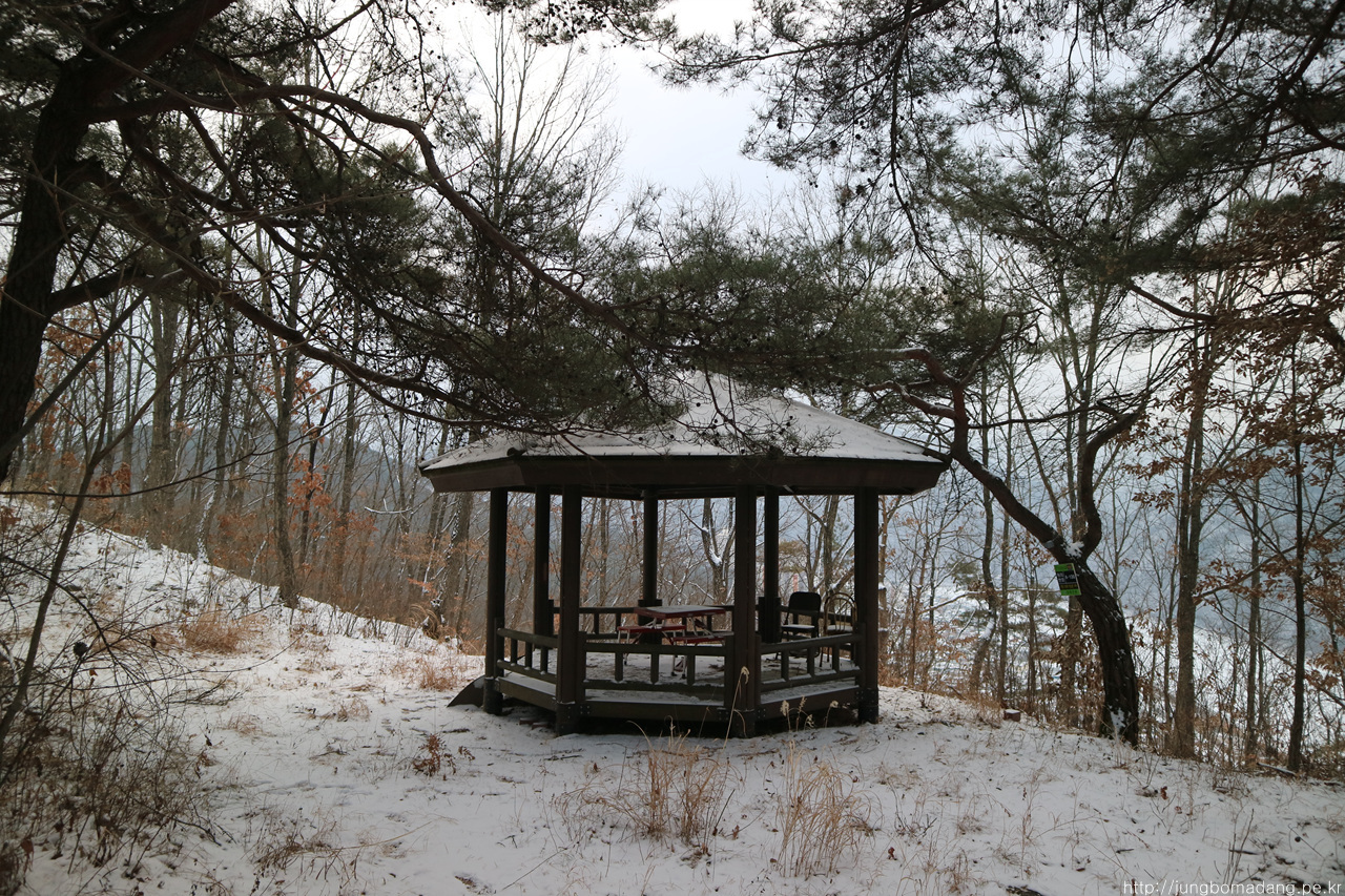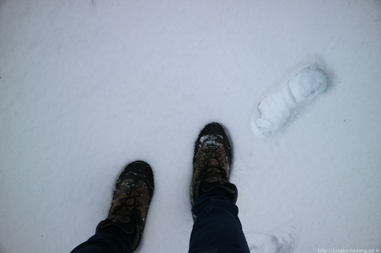 알고보니 새벽에 눈이 와서 정자 안에까지 온통 눈밭!