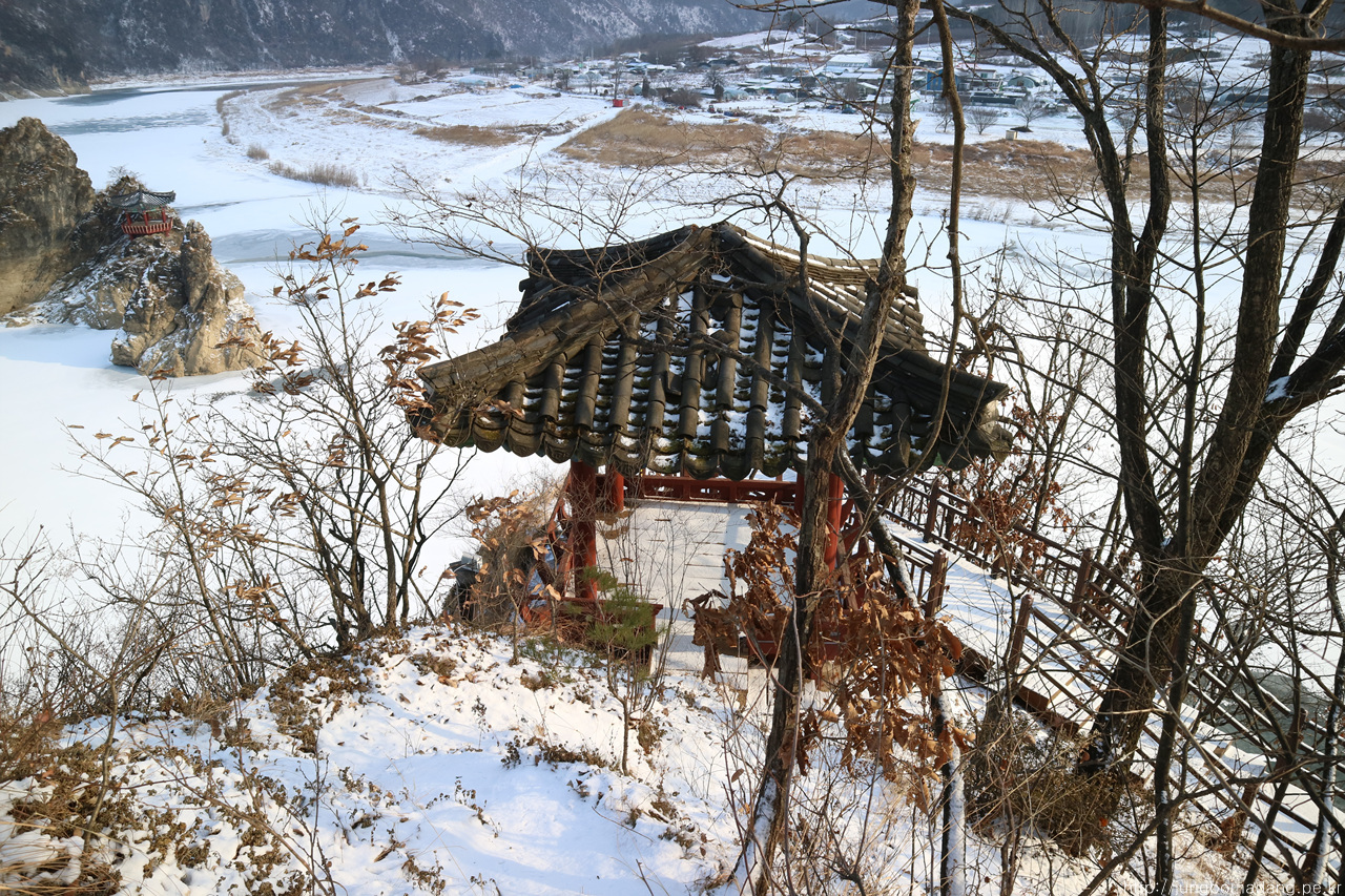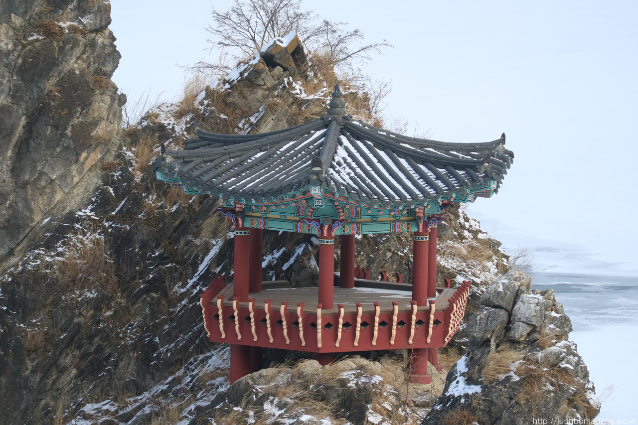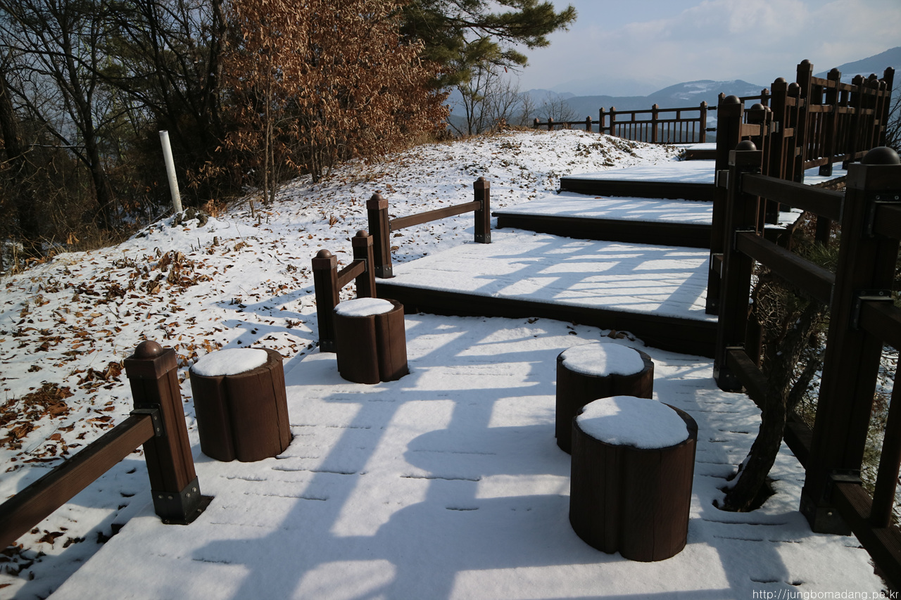 알고보니 새벽에 눈이 와서 정자 안에까지 온통 눈밭!