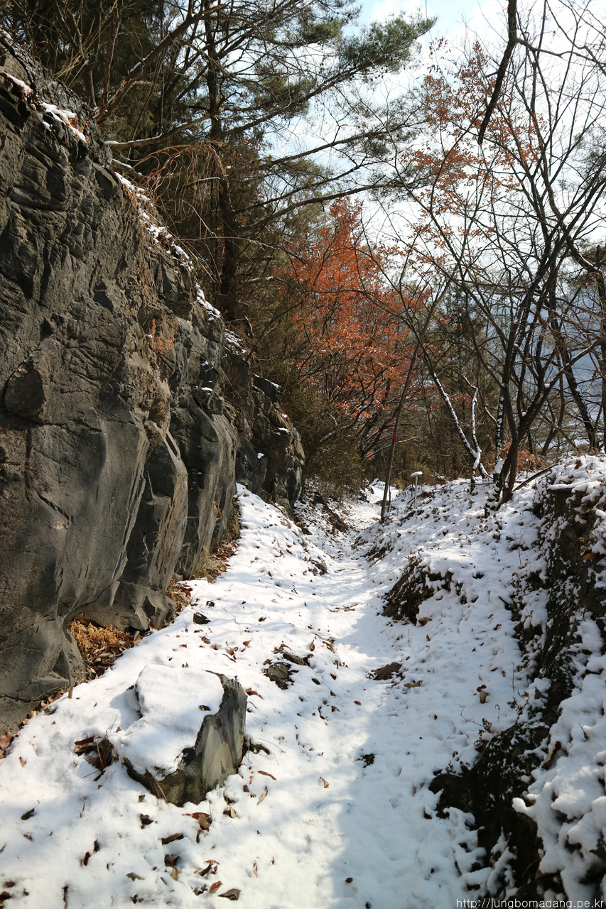 헐~ 낙엽과 눈이 뭉쳐서 아이젠에 들러붙는 이른바 스노우볼 현상 떄문에 두번이나 엉덩방아 찧었네요 ㅠㅠ