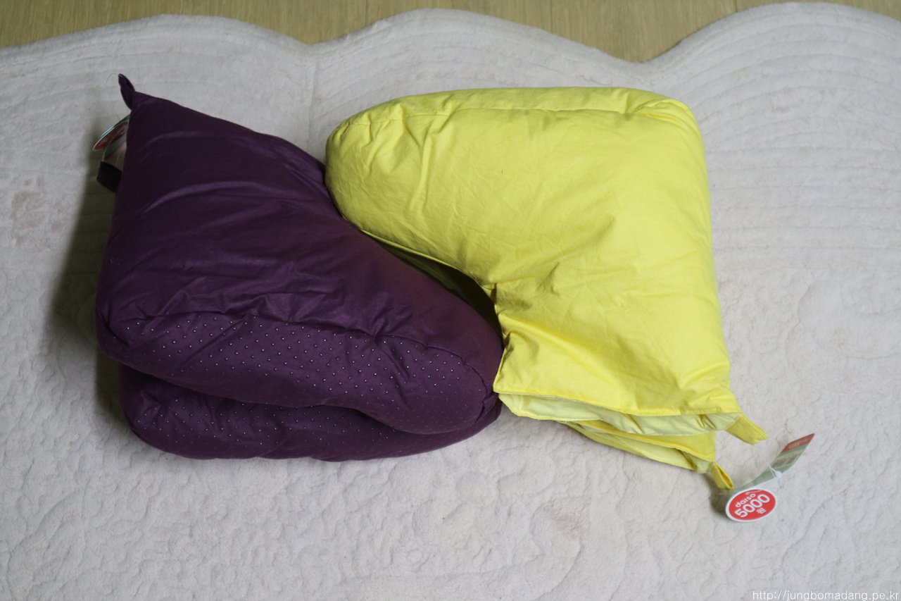 누군가는 이건 오리털이 아니다! 라는 의심에 부흥이라도 하듯이 요래 살짝 오리털 샘플이 삐져나오는 섬세함이 엿보이네요. 오리털인 거 확인 했으면 삐져나온 털은 살살 빼서 휴지통으로....