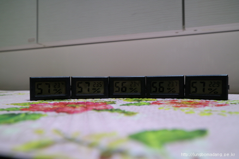 왼쪽의 큰 수치는 습도, 우측 위에 작은 수치는 온도.