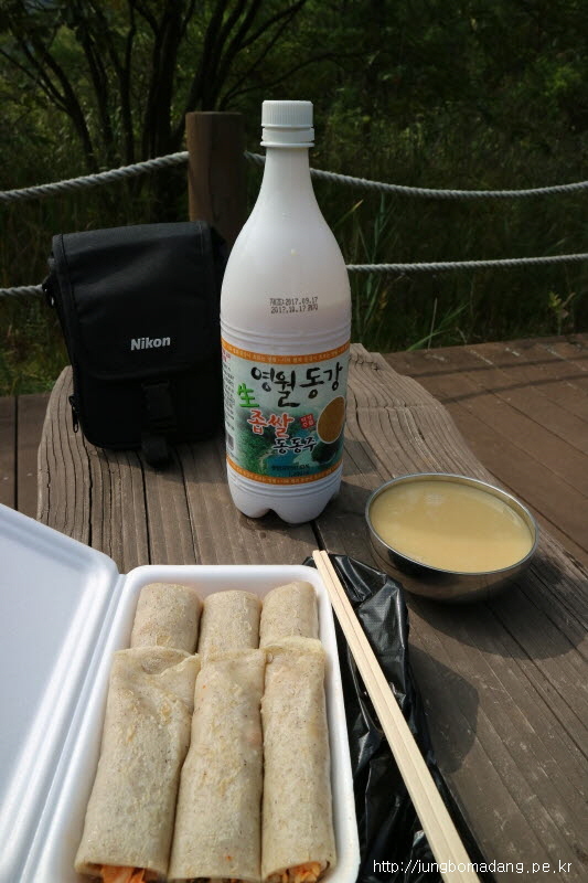 잠시 쉬는 시간... 드디어 막걸리 오픈! 역시 메밀전병과 함께 먹어야 영월좁쌀동동주의 완성이죠 ^^