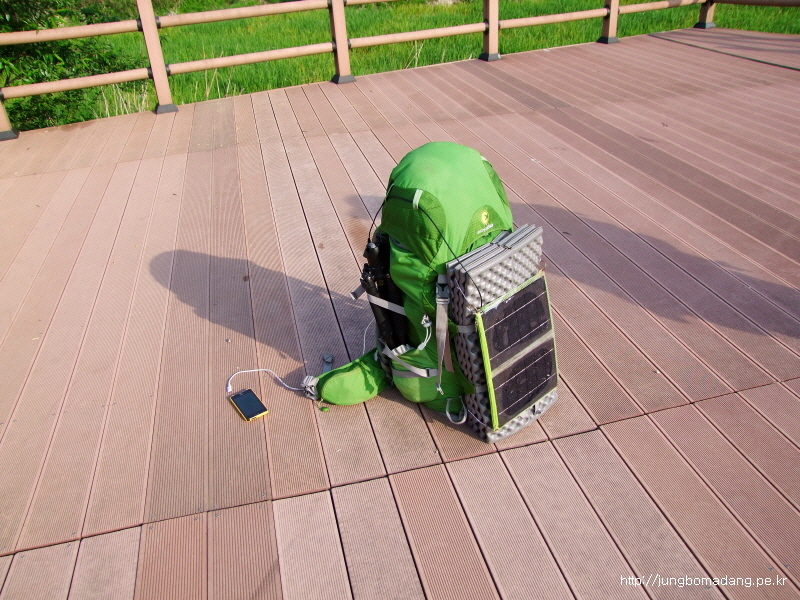 하지만, 전날 유일하게 챙겨온 18650 충전지가 절단나는 바람에 다행히 추가로 챙겨온 솔라패널로 스맛폰을 굶기지 않기 위해 처절한 사투가 시작 됩니다.