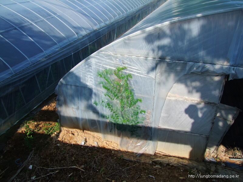 비닐하우스 안에 나무 한그루가 해를 보기위해 사이를 비집고 오르는 처절한 자연의 신비...