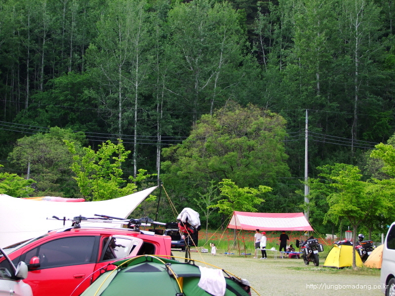 머지 않은 곳에 위치한 무료캠핑장입니다. 텐트 세팅을 마치고
