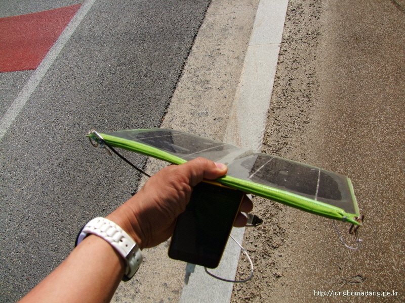 하지만, 전날 유일하게 챙겨온 18650 충전지가 절단나는 바람에 다행히 추가로 챙겨온 솔라패널로 스맛폰을 굶기지 않기 위해 처절한 사투가 시작 됩니다.