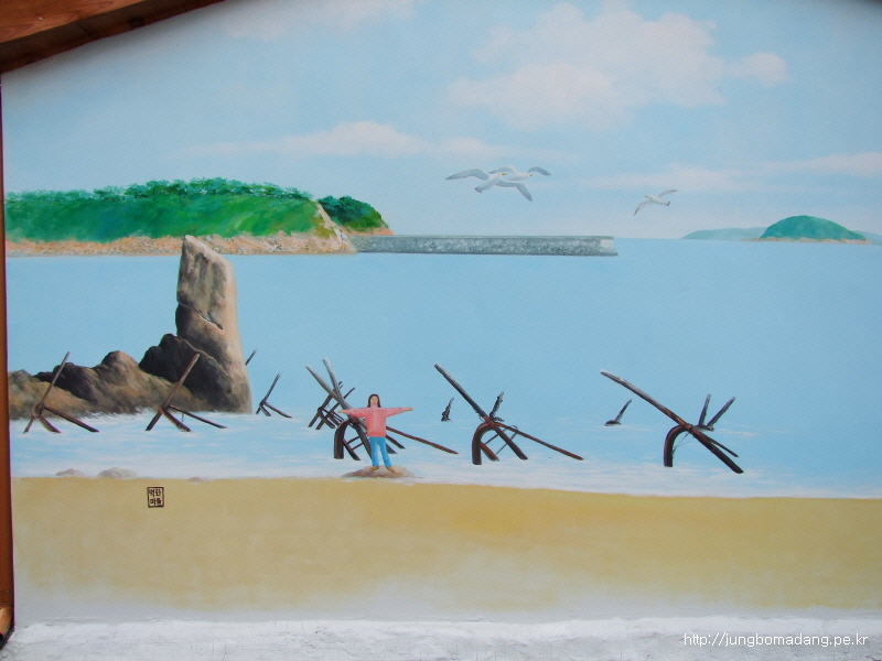 걸어서 벽화가 걸린 마을로 움직입니다.
