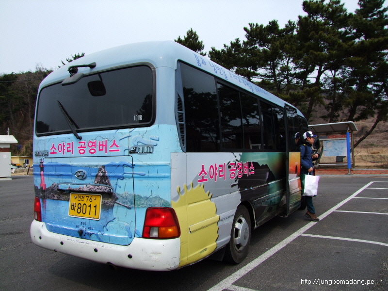 11시 30분 마을회관을 출발하는 버스를 타고 떼부리 해변을 들려서 선착장에 도착!