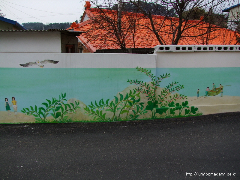 걸어서 벽화가 걸린 마을로 움직입니다.