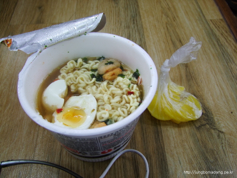 12:00 배에 올라서 출발~... 출출해서 라면(2500원) 사주셔서 맛나게 먹구요. 짜게 안먹는 식성 둘 다 일치! - 인천으로 3시간 가는 거 보다 1시간 30분 후 방아머리에서 안산역으로 가는 게 어떠신지 여쭈니 콜~~~