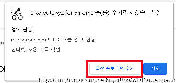 확장 프로그램 추가 버튼을 누릅니다.