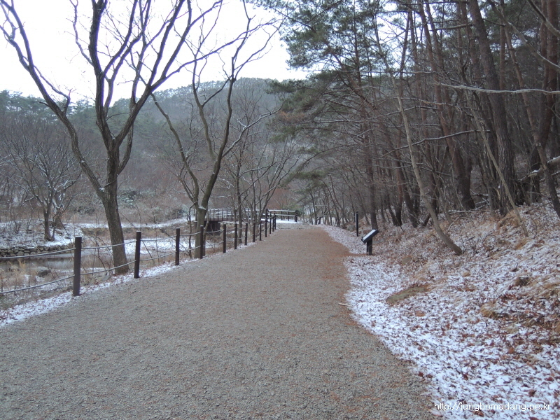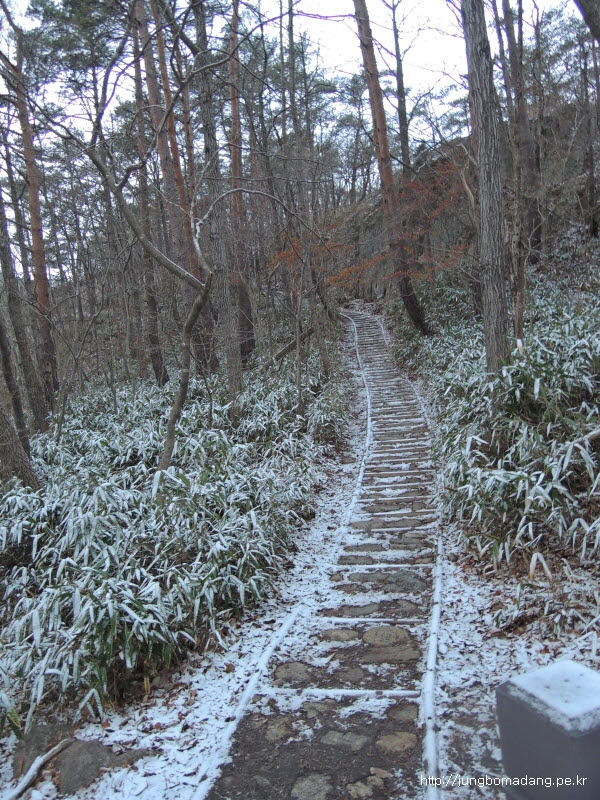 정자가 2개나 있네요. 공원 산책하는 분이 계신데 같이 따라온 흰둥이 두마리가 호기심어린 눈으로 나에게 달려듭니다. 주인이 불러도 가지도 않고 ㅋㅋㅋ 하지만, 내가 탐방로로 진입하니 그제서야 되돌아갑니다.
