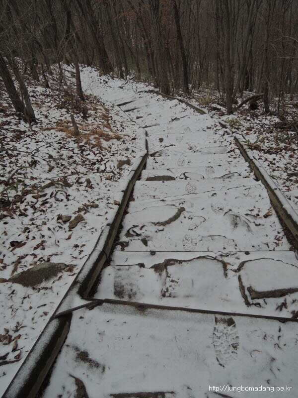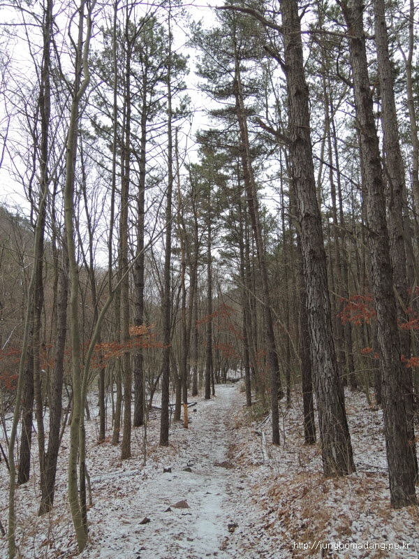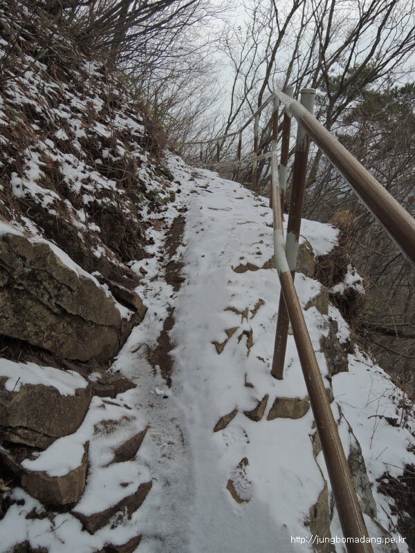 07:40 산행 시작합니다. 날씨가 꾸물꾸물한게 눈이라도 올 거 같네요.