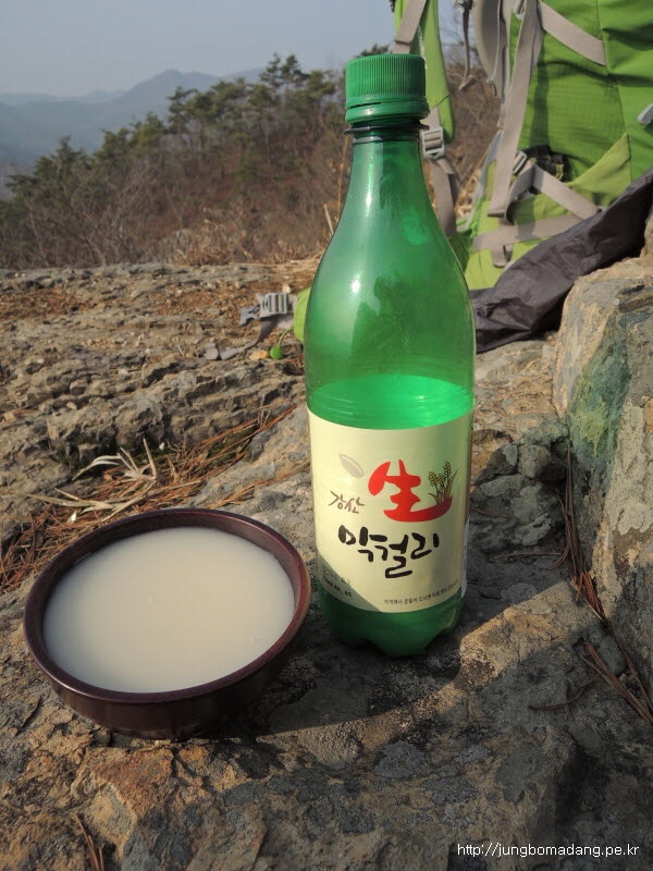 안주가 점점 부실해지네요. ㅋㅋㅋ 근데 그만큼 배낭 무게는 가벼워진다는 것! 배부르니 막걸리를 메인으로 맛동산을 오픈합니다.