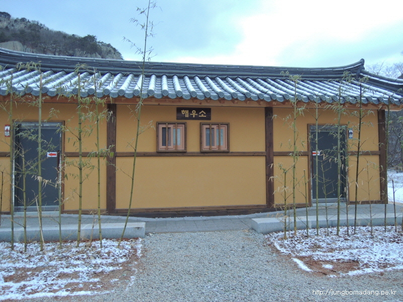 이렇게 훌륭한 정자를 예상보다 빠른 시간에 발견했네요. 눈이 약간 쌓였지만, 괜찮아요. 글구 여긴 바람이 없네요. 집을 짓고 짐을 안에 던져 놓고,