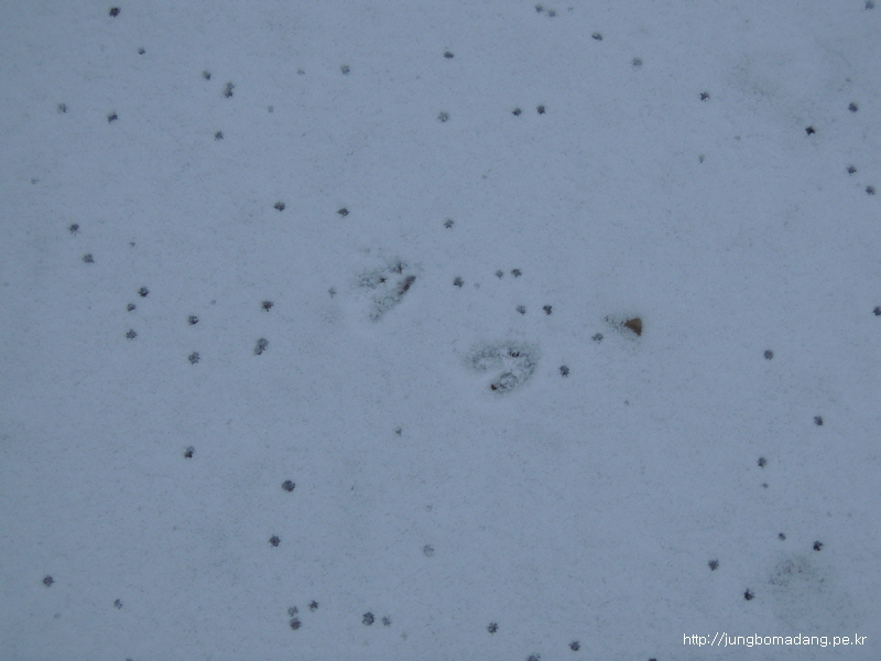 아무도 없네요. 눈 쌓인 이 길은 저 혼자 거닐게 되네요.