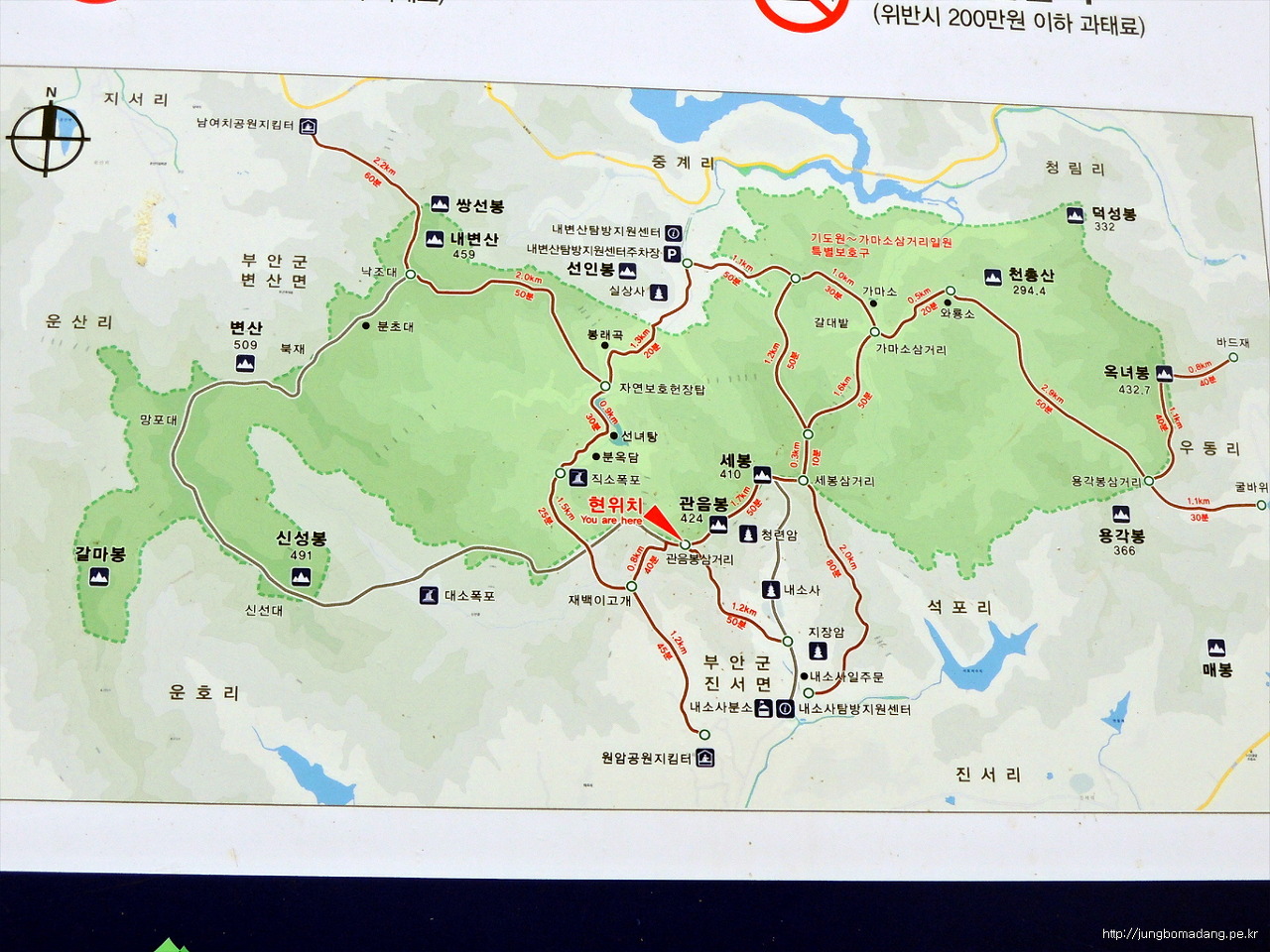 산행 경로는 내변산~직소폭포~재백이고개~관음봉삼거리~관음봉~관음봉삼거리~내소사 되겠습니다.