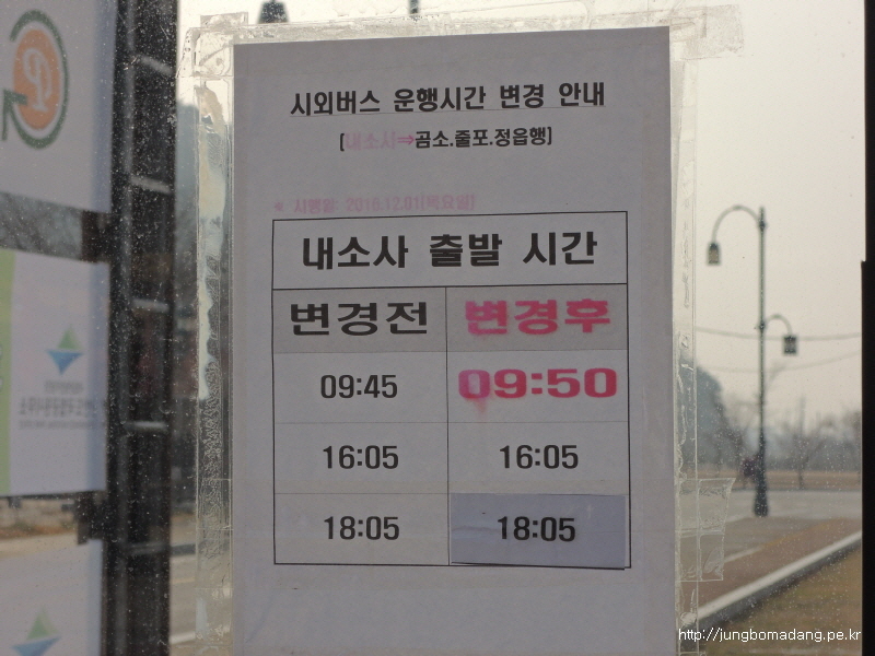 사자동은 하루 몇대 운행하지 않아요. 요건 내소사에서 되돌아올때 경유하는 줄포쪽 시간표입니다.