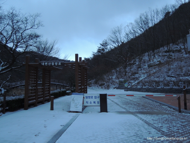 07:40 산행 시작합니다. 날씨가 꾸물꾸물한게 눈이라도 올 거 같네요.