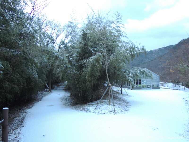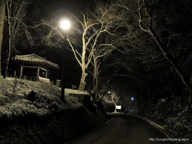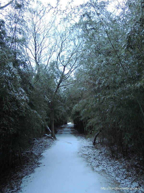 아무도 없네요. 눈 쌓인 이 길은 저 혼자 거닐게 되네요.