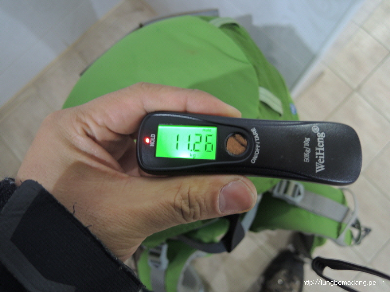 07:05 음... 또다시 어둠이. 해뜨길 30분 정도 기다려야합니다. 다행히 국립공원이라 화장실이 있어 그 안에서 잠시 대기하기로 합니다. 심지어 전기히터도 있네요! 배낭 무게는 무려 11.26kg ㅋㅋㅋ
