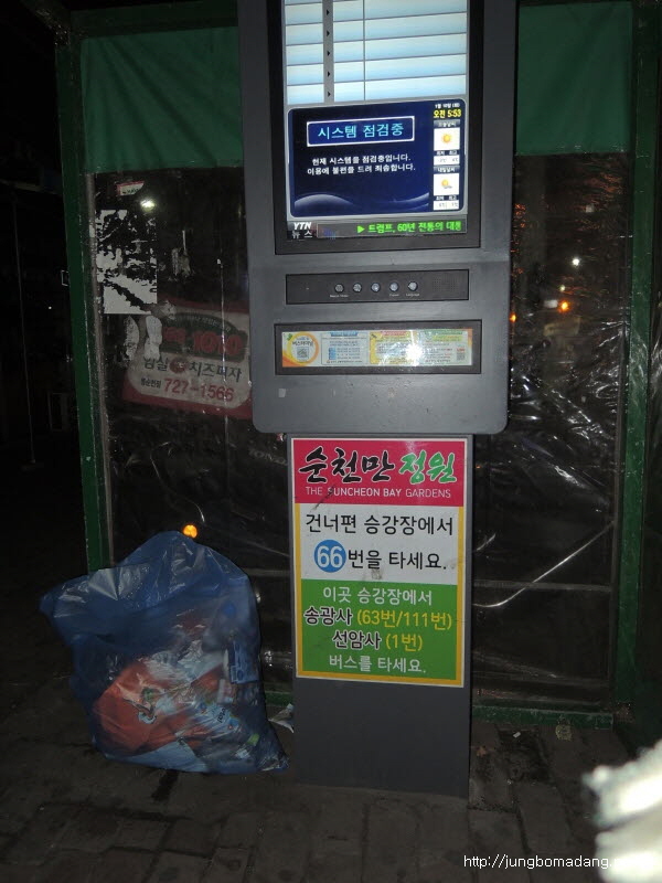 18:00 순천으로 가는 버스를 탑니다(6200원,1시간 10분 소요). 18:51 광양을 경유하여
