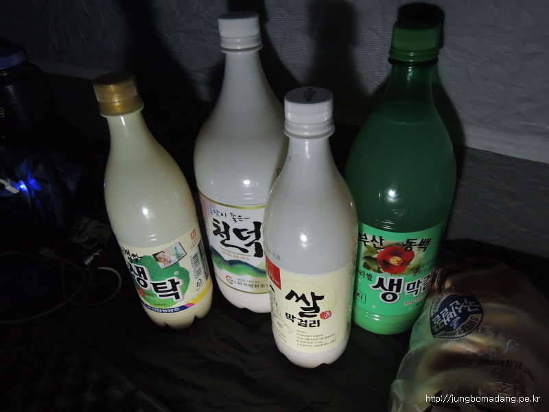 응도 때리고 온 뒤에 편안하게 안으로 들어옵니다. 안주(꿀호떡,사과,배,맛동산,과자,라면사리2개)가 어마무시 하네요. 막걸리 한병은 금산에서 해치우고 4병 남았네요 ㅋㅋㅋ 막걸리 부자~~~