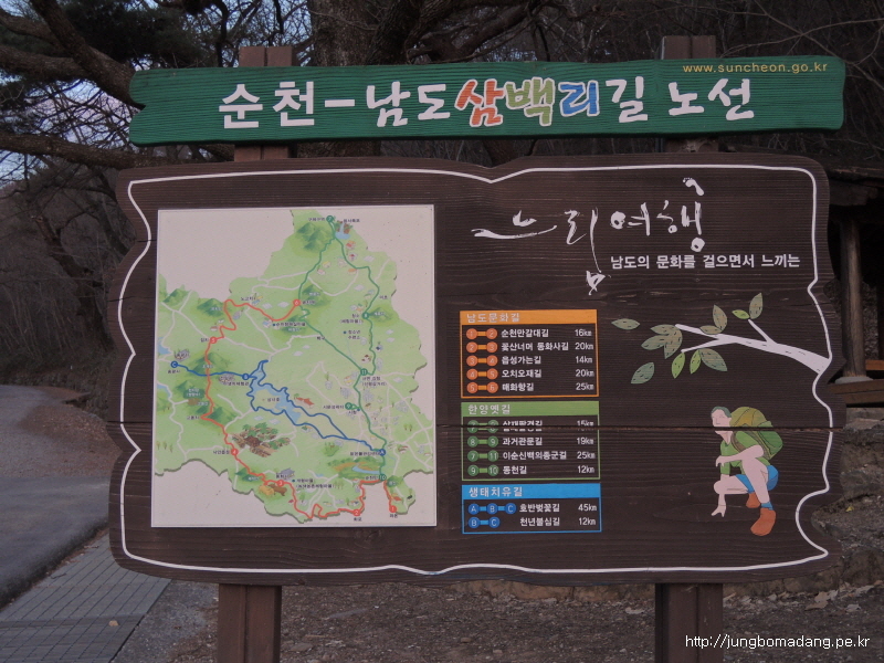 이쪽에도 안내판이... 300리면 하루 50km씩 6일이나 걸어야하는 데 말이죠. 산이 껴서 그마져도 단기간에 쉽지 않겠지요.