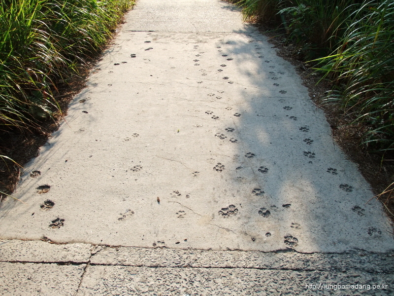 1억 5천만년전 똥개들의 조상 발자취 화석도 지납니다. - "내가 공구리 마르기 전에 지나가지 말랬지!"