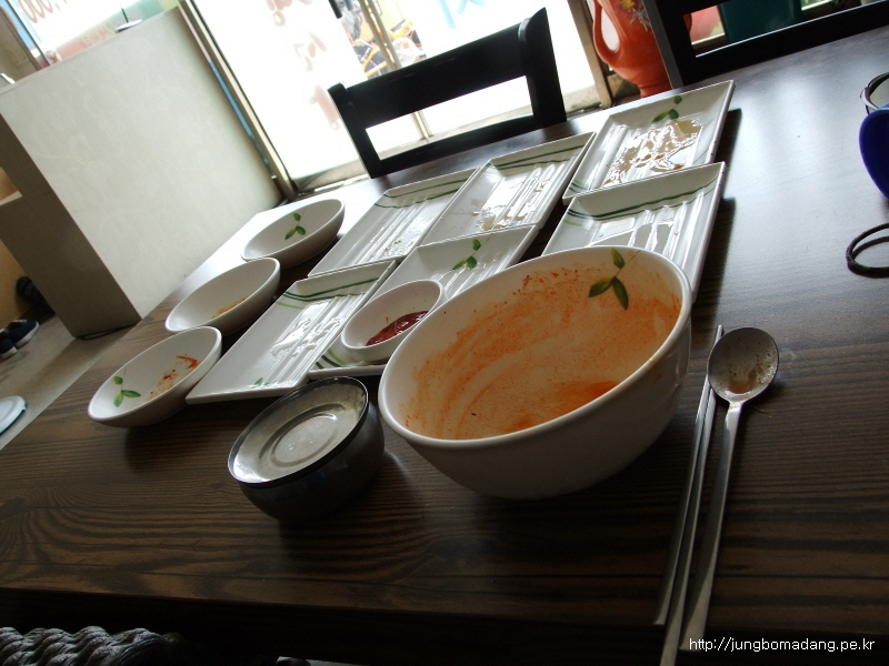 깨끗히 다 비웠네요. 정수기에 시원한 물도 배불리 먹구요. 조금 얻어 가구요. 혹시 여기 지나실 분 물회 강추! 뭐 다른 음식도 보나마나 맛나겠쥬?
