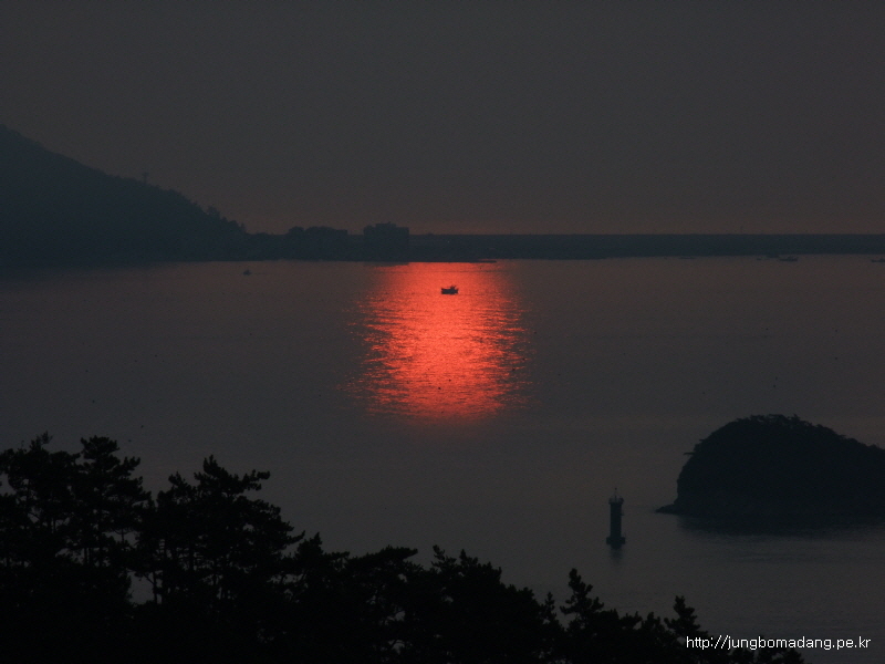 구름에 가려 해는 안보이고, 그 빛이 바닷물에 비추어서 이런 모습인겁니다. 그것도 한참이나...