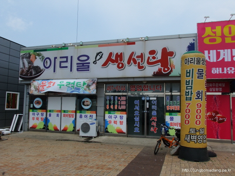 깨끗히 다 비웠네요. 정수기에 시원한 물도 배불리 먹구요. 조금 얻어 가구요. 혹시 여기 지나실 분 물회 강추! 뭐 다른 음식도 보나마나 맛나겠쥬?