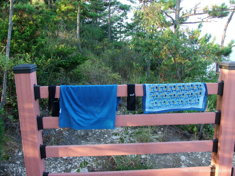 전망대 한쪽은 빨래터로 전락! 아무도 없네요. 아무도 없으니 물티슈 4장으로 온몸을 샤워!