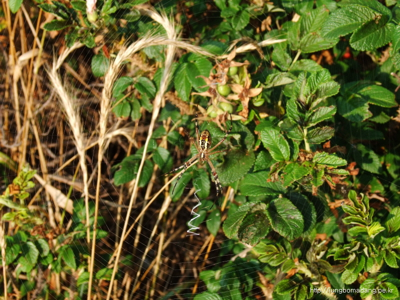 호랑거미 녀석은 거미줄을 툭툭 건드려봐도 미동도 없습니다. 역시 이름값하는 호랑거미 였습니다.