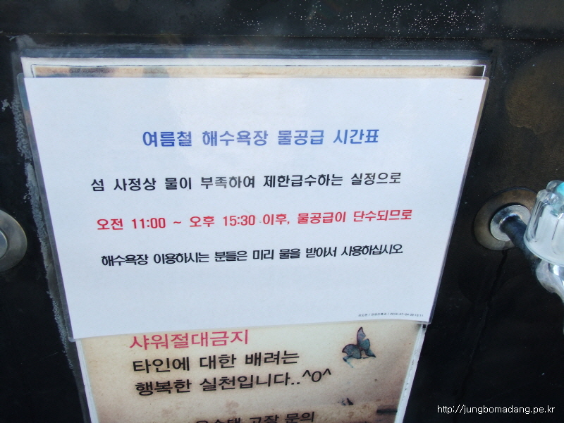 아싸하~ 명사십리해변에 음수대가... 근데 헐... 여기선 우유가 나오네요... 우윳빛깔 이물의 정체는 뭐죠? 찝찝해서 못먹겠고, 혹시몰라 화장실 세면대에 물의 맛을 보니 짭조름? 헐~ 화장실은 바닷물 그냥 떙겨 쓰는 듯....