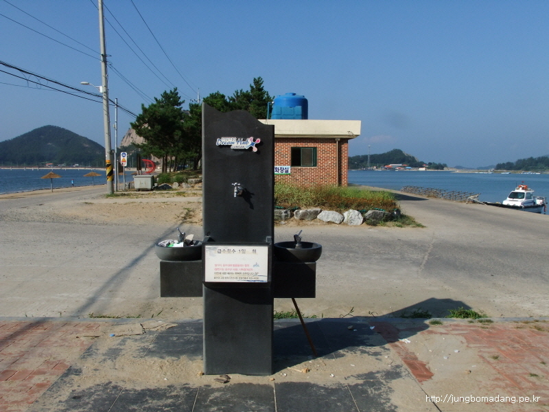 헐~ 물이 나오네요. 맛도 나쁘지 않아요. 근데 수압이 쎄지는 않지만, 물이 없음 여기서 받아서 들어가도 되겠네요. 선유도해변에 음수대는 여름에 급수제한시간이 있거든요.