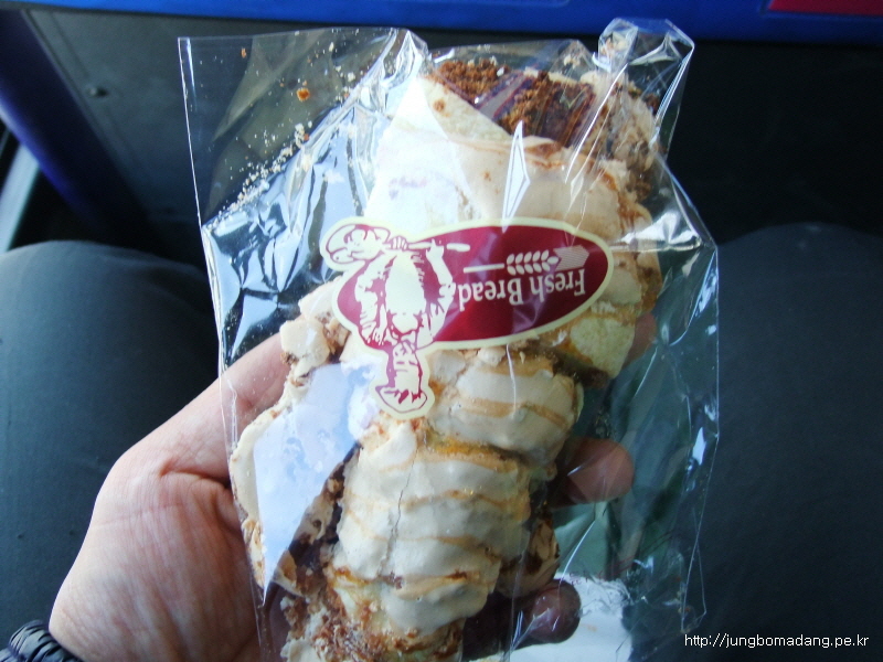 08:50 160번 버스를 타고 단양으로 향하는 길. 아침으로 우유와 빵 두개를 먹습니다