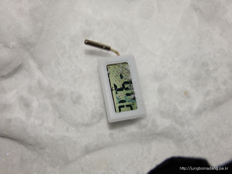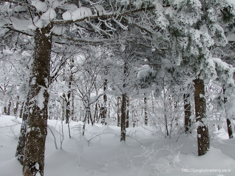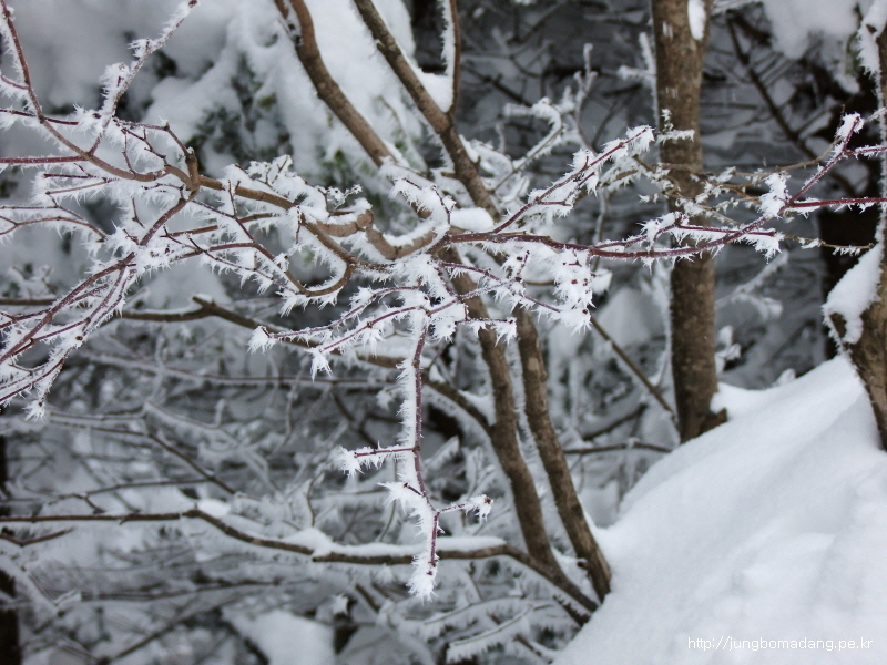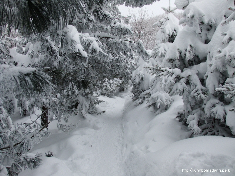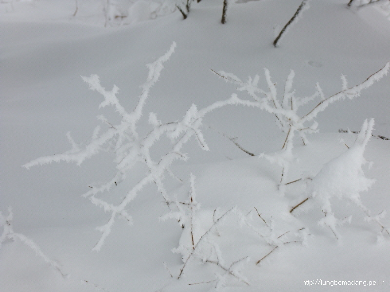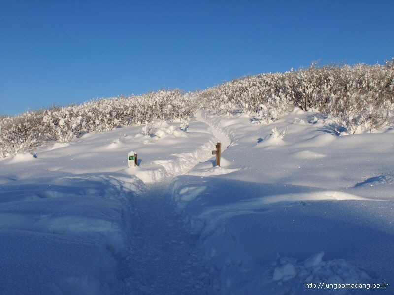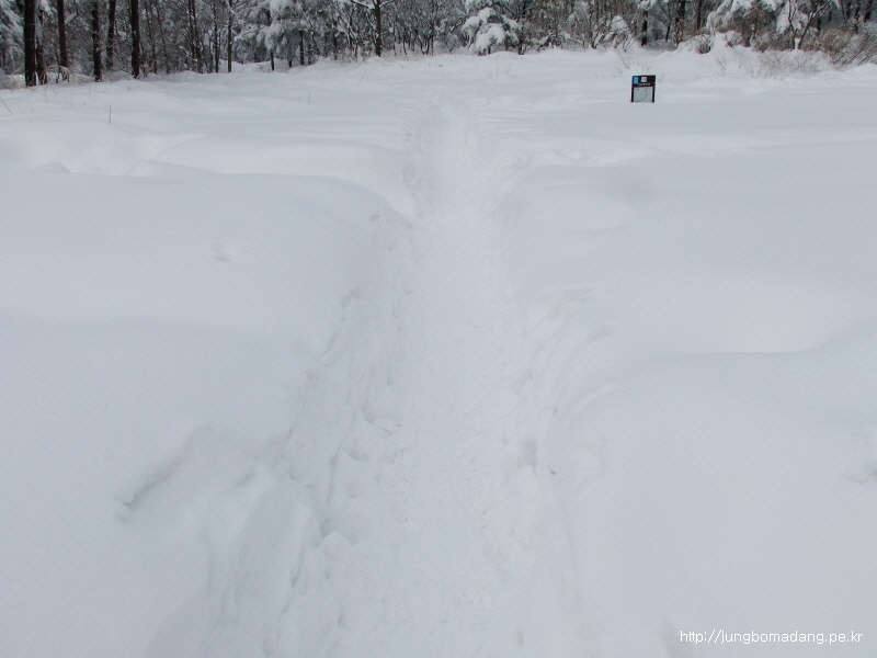 등산로 옆에 눈이 쌓인 곳에 스틱을 꽂아보니 거의 잠깁니다.