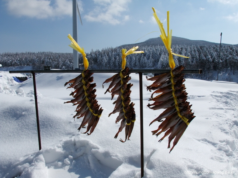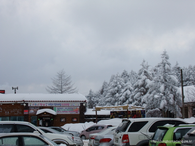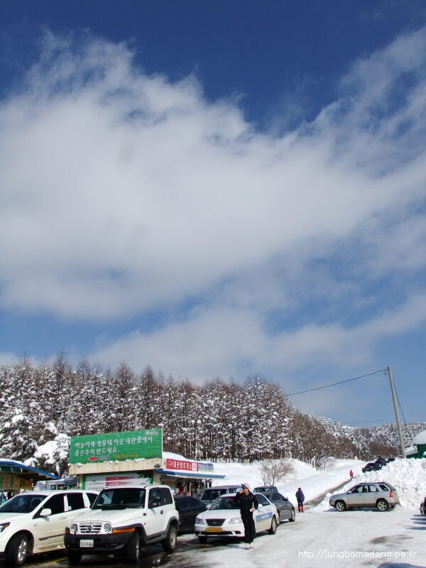 15:48 대관령 휴게소에 도착합니다... 포크레인이 부지런히 한쪽으로 눈을 쌓고 있습니다. 사람 키를 훌쩍 넘는 눈이 얼마나 눈이 왔었는 지 가늠케 합니다.
