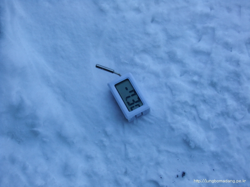 22:58 현재 기온입니다. 영하 9.7도. 근데? 바람이 거의 안불어서 춥지는 않습니다.