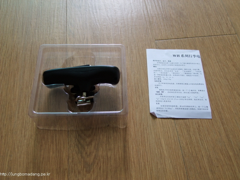 박스를 열어봅니다. 좌측에 제품본체(휴대용 저울)가, 우측에 설명서(중국어,영어)가 한장 동봉되어 있습니다.