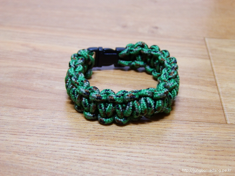 자~ 완성 되었습니다. 거의 끝부분까지 체결이 되었다면, 한번 팔목에 감아 보시고 만일 작거나 크다면 위의 줄을 풀러서 위의 1.~6. 방법을 반복한 뒤, 정확히 길이가 맞으면 마지막 튀어나온 줄은 적당히 자른뒤 라이터로 지져서 마무리해줍니다.