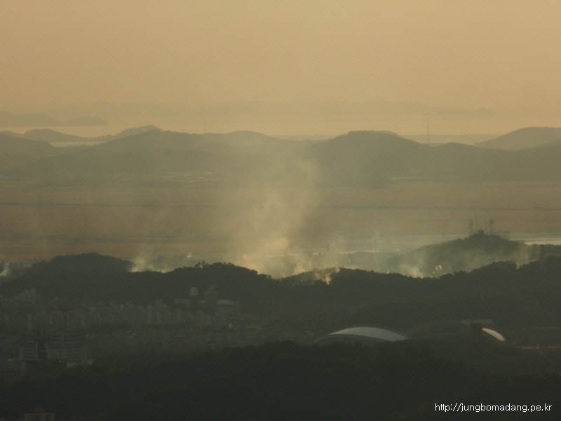 저건 뭐죠? 불 나는 건 아닌 것 같고... 뭔 연기가?