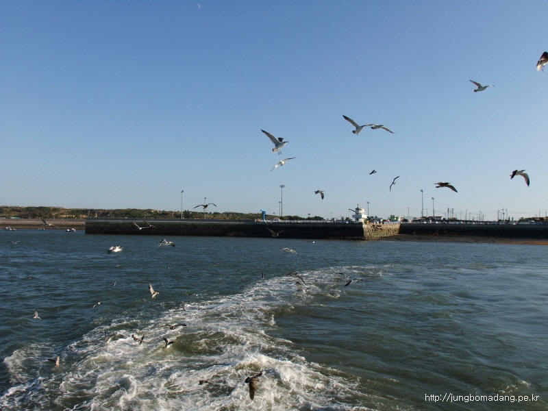 배에서 설렁 설렁 음료수를 마시며, 갈매기에게 사료를 주입하는 시간을 가진 뒤에...