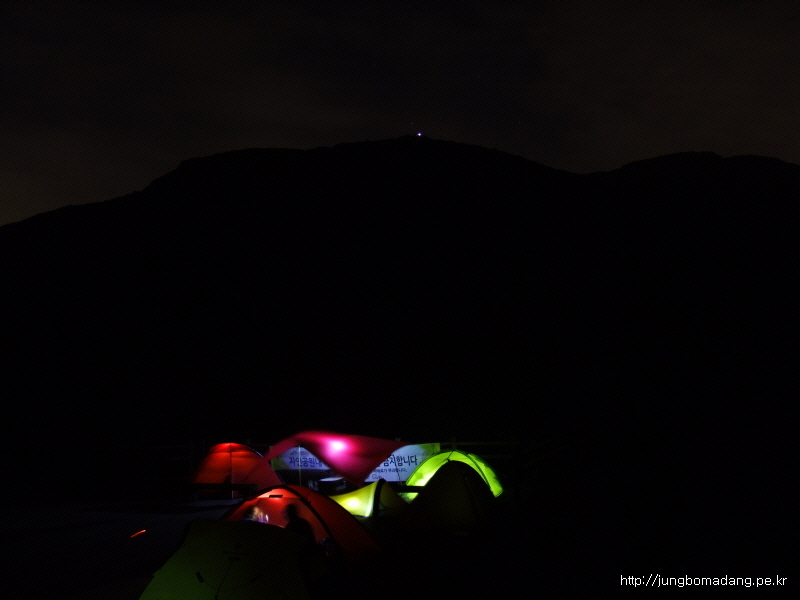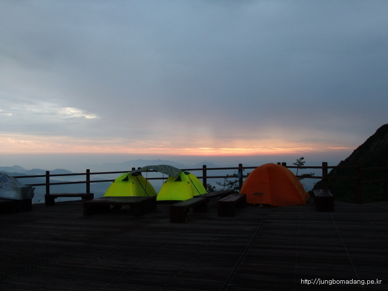 새벽에 심한 떵~ 바람으로 텐트가 꿀렁거려서 몇번 깨고 자고.... 그리고 마지막으로 눈을 팍~ 뜨니 텐트가 환합니다...?